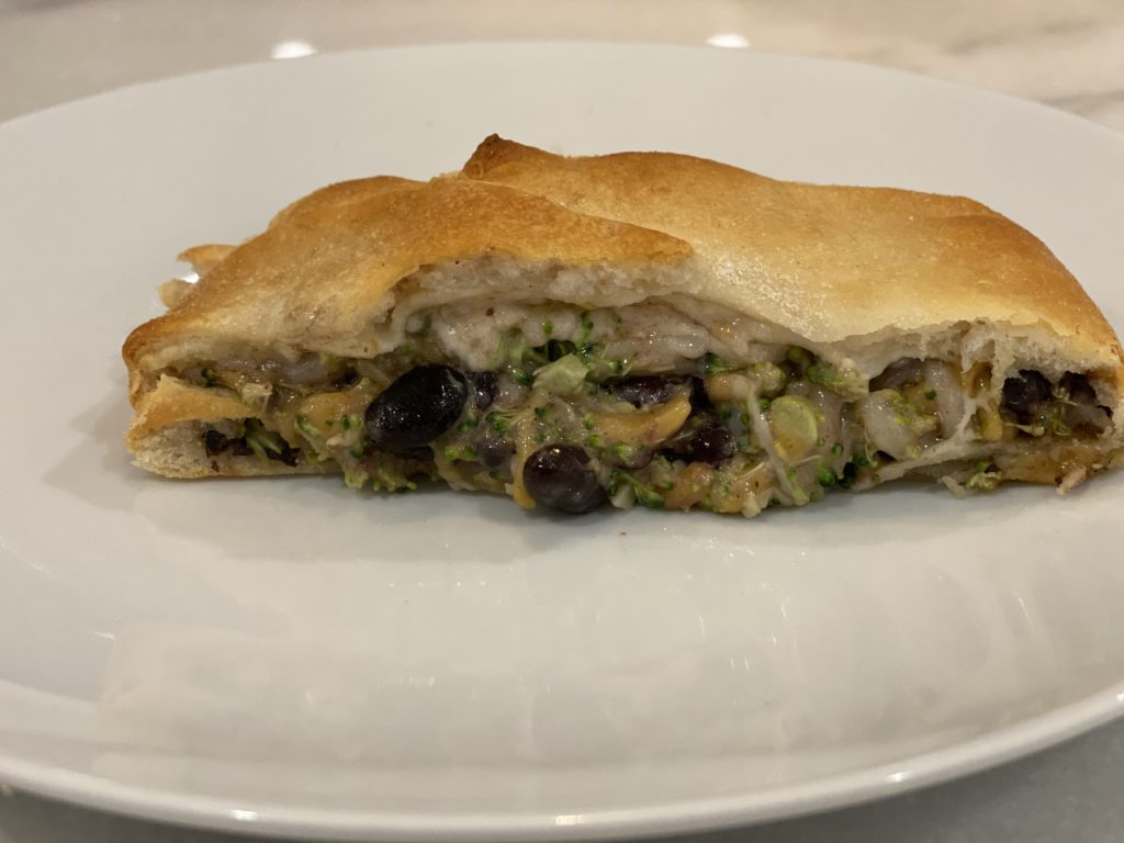 - Start to fold the cut dough to cover the mixture. You can get creative and overlap it in in fancy braid like manner or simply get the two cuts to meet in the middle to cover the mix.