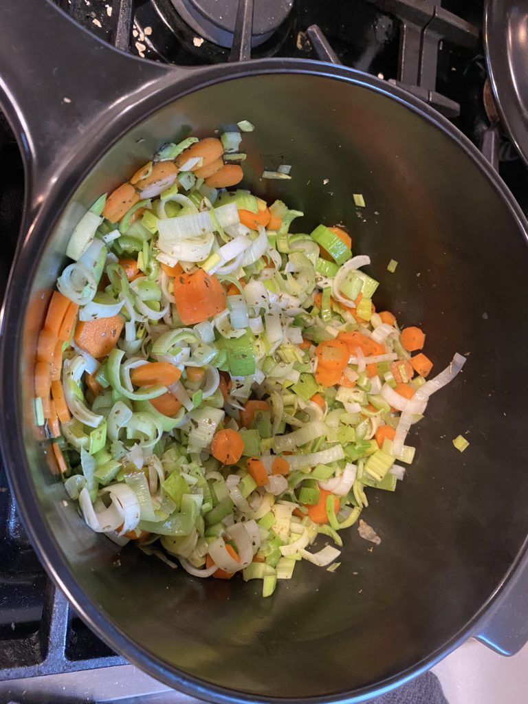 - 5. Place carrots, leeks, and celery in a medium bowl and drizzle a little olive oil to coat. Then add 1/4 teaspoons Italian seasoning, salt and pepper to taste, and mix together.